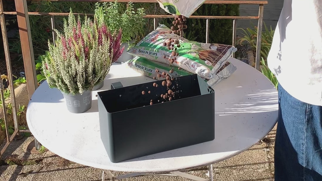 💦 We recommend putting clay balls at the bottom of the planter before adding the potting soil.